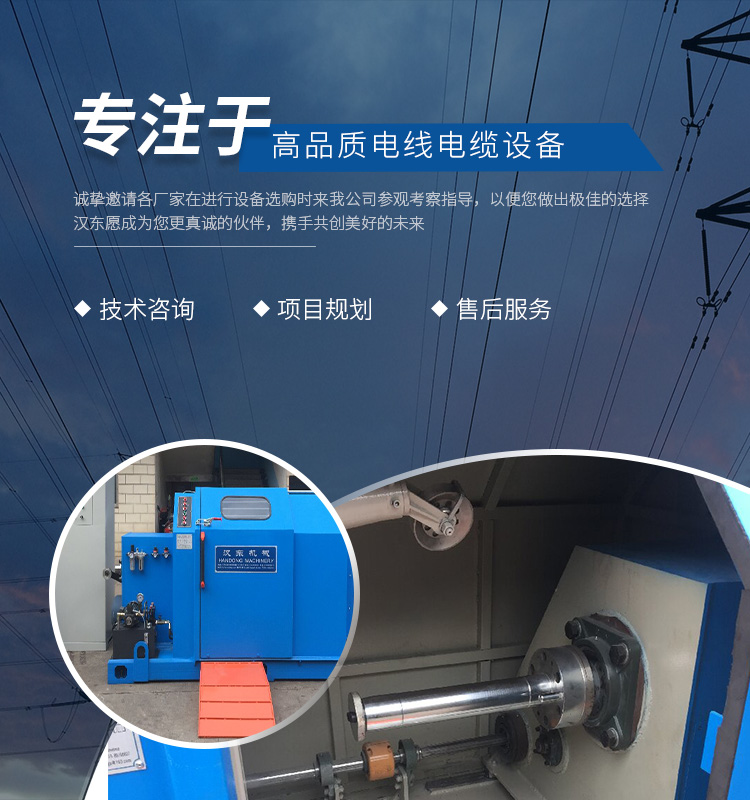 常州漢東機械始創(chuàng)于2006年,是集電線電纜機械設(shè)計、開發(fā)、制造、安裝、調(diào)試為一體化的高科技企業(yè)。本公司自開業(yè)以來,積極引進日本,歐美等國外電線電纜設(shè)備之先進技術(shù),先后成功推出了達到行業(yè)先進水平的電線電纜設(shè)備,主要產(chǎn)品有擠出、繞包、束線、成纜等電線電纜固定設(shè)備。在提供系統(tǒng)設(shè)備的同時,還向客戶提供售前技術(shù)咨詢、項目規(guī)劃、以及售后服務(wù)。我公司本著“以人為本、科技先導(dǎo)、用戶為上”的宗旨,為客戶提供牢靠的產(chǎn)品與省心的服務(wù)。漢東愿成為您更真誠的伙伴,攜手共創(chuàng)美好的未來!